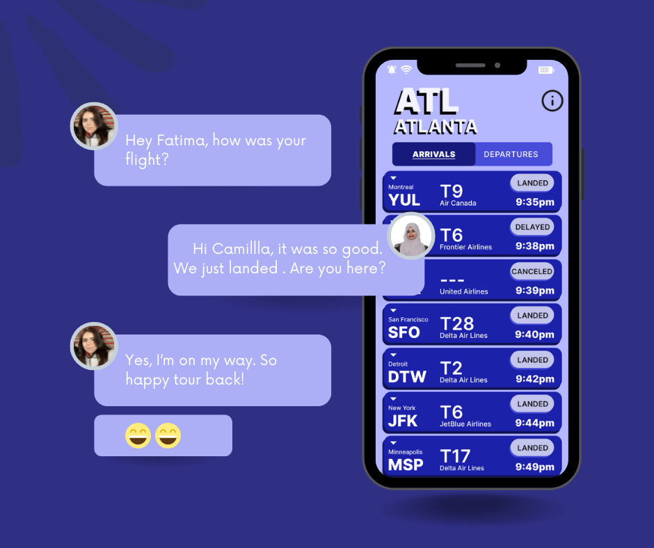 The purpose of this project is to find an easy and simple way to communicate departures and arrivals to funky, colorful old people while also providing them with information about their airlines as well. Imagine, while in your youth, you love bright colors and unique things and enjoy being different, and are probably rich. When you get older, you want all the things in your life to still incorporate these personality traits and preferences, even in the apps you have on your phone.